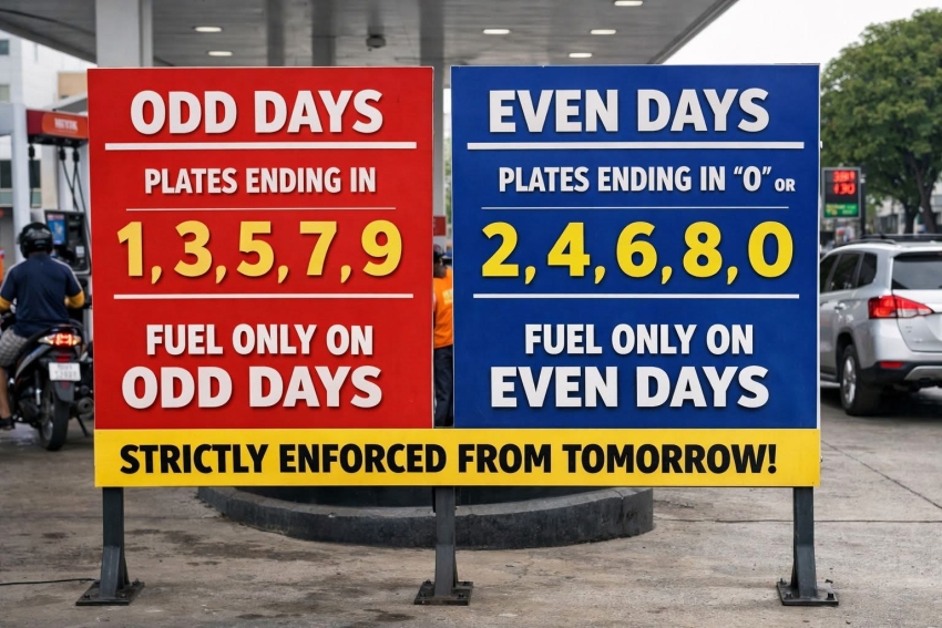 இலக்கத் தகட்டின் கடைசி இலக்கம் இரட்டை எண் அல்லது பூஜ்ஜியம் (0) ஆக இருந்தால் இரட்டை எண்களைக் கொண்ட திகதிகளிலும், ஏனைய இலக்கங்களுக்கு ஒற்றை எண்களைக் கொண்ட திகதிகளிலும் எரிபொருள் விநியோகிக்கப்படும்.
